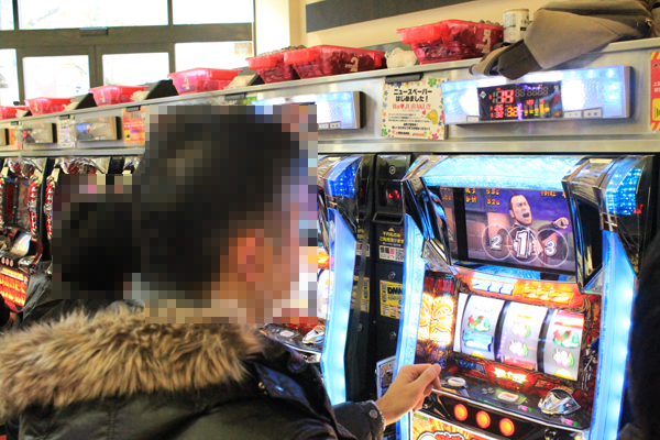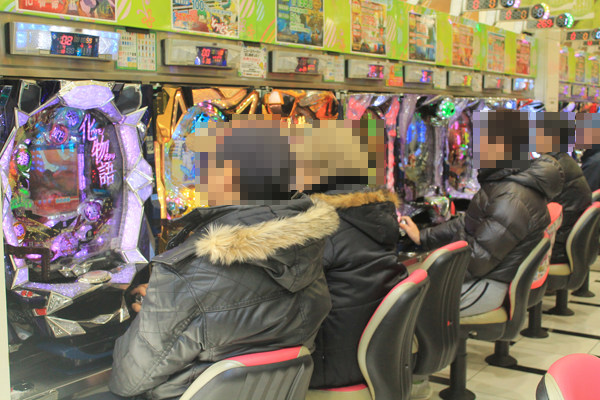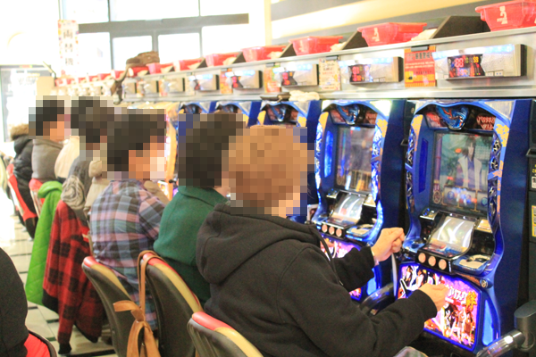 パチスロでは「バジリスク~甲賀忍法帖~絆」や「ヱヴァンゲリヲン~決意の刻~」が満席となっていた。どちらも長く人気を集めている機種だけに、プレイヤーがホールに期待していることが強く伝わってくる。