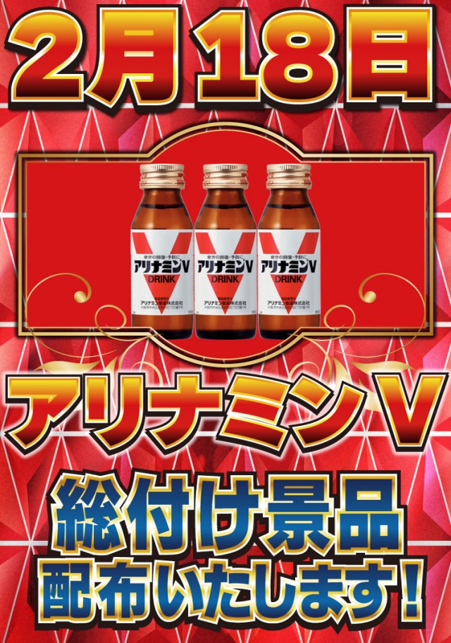 大型配置変更済み👀❗本日は総付け景品『アリナミンV』配布🌟