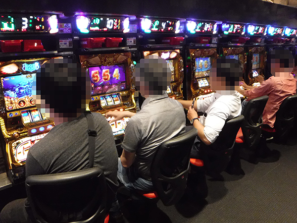 14時過ぎの店内では、「バジリスク~甲賀忍法帖~絆」や「押忍!番長3」などの定番機種を中心に盛況。高稼働なだけでなく、機種の性能をフルに活かしているプレイヤーたちの笑顔が印象に残っている。