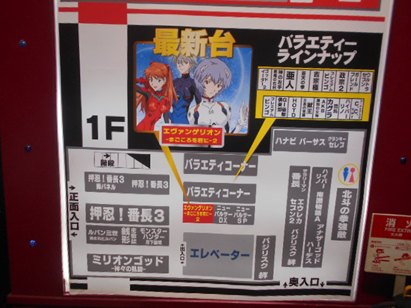 また、入り口付近には機種の配置図が大きく貼られているため、目当ての機種もすぐにみつかりそうだ。