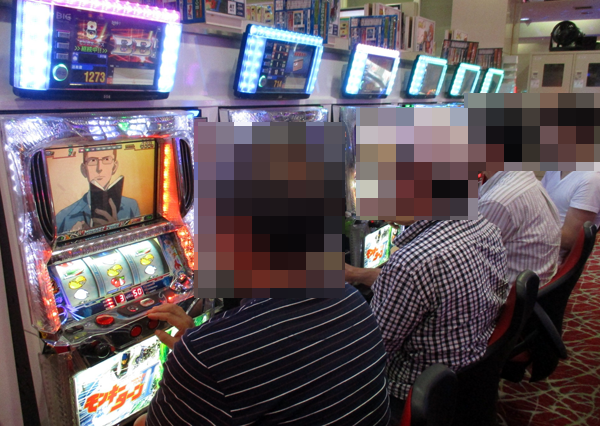取材日は開店前から約20名のプレイヤーが集まっており、開店直後は新台として導入されていたパチスロコーナーの「パチスロ獣王 王者の帰還」などが満席となっていた。