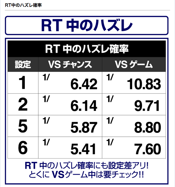 RT中、とくにVSゲーム中のハズレは設定差があるので要チェックだ。