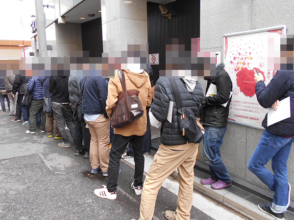 取材日となった3月6日の入場抽選には、30名を超えるプレイヤーが参加。開店時には、一般入場も含めて60名前後が入店していった。