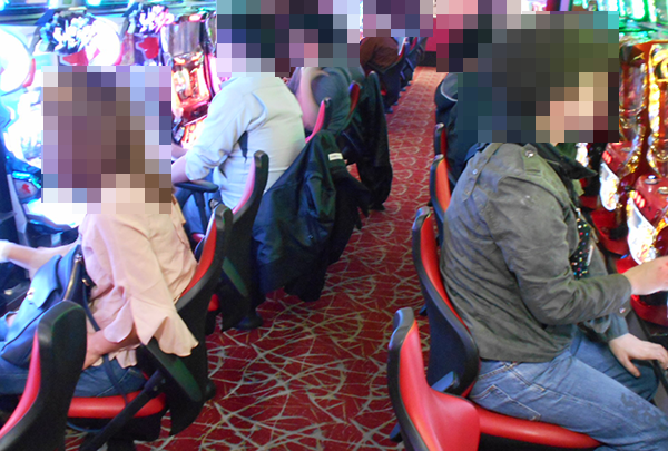 「バーサス」や「新世紀エヴァンゲリオン~まごころを、君に~2」、新台の「パチスロ 超 GANTZ」なども盛況となっており、プレイヤーは笑みを浮かべていた。