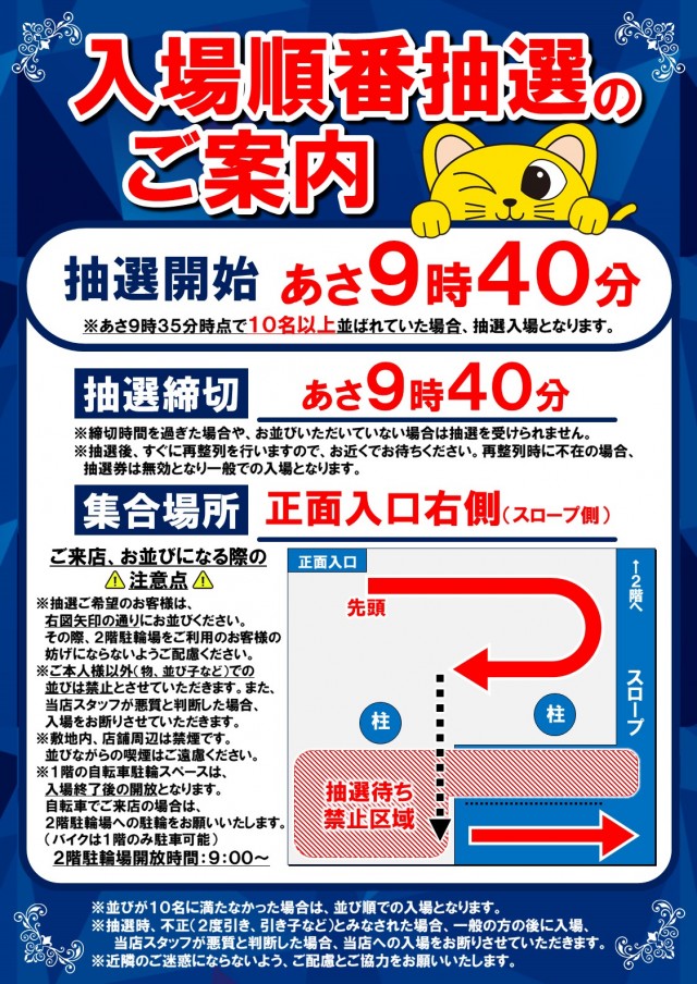 抽選時間:9:40 ※10名以上並ばれた時に限り 9名以下の場合は先着順となります |