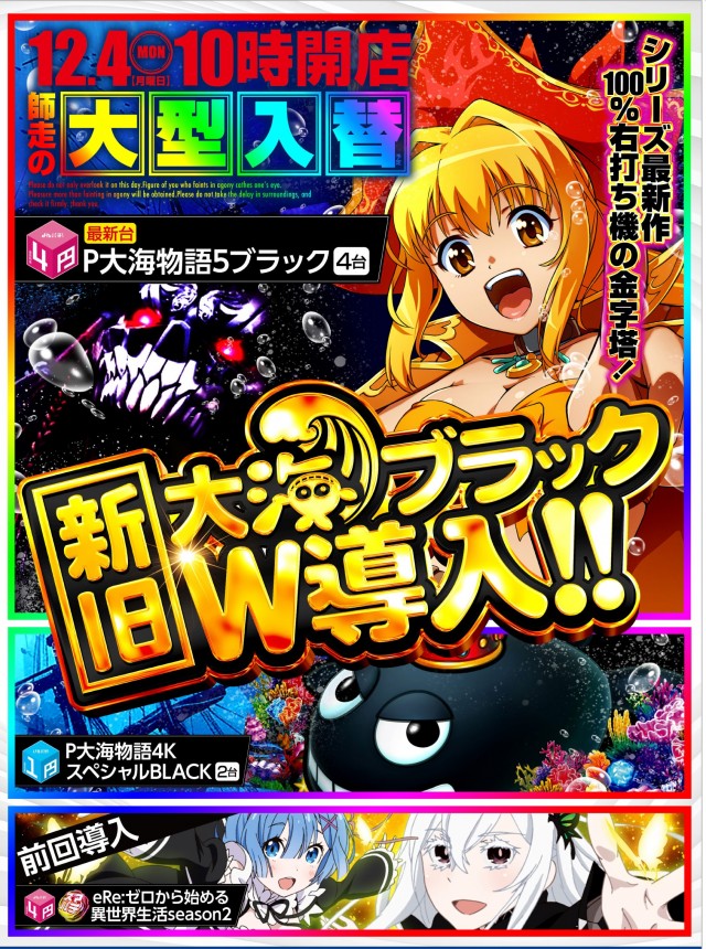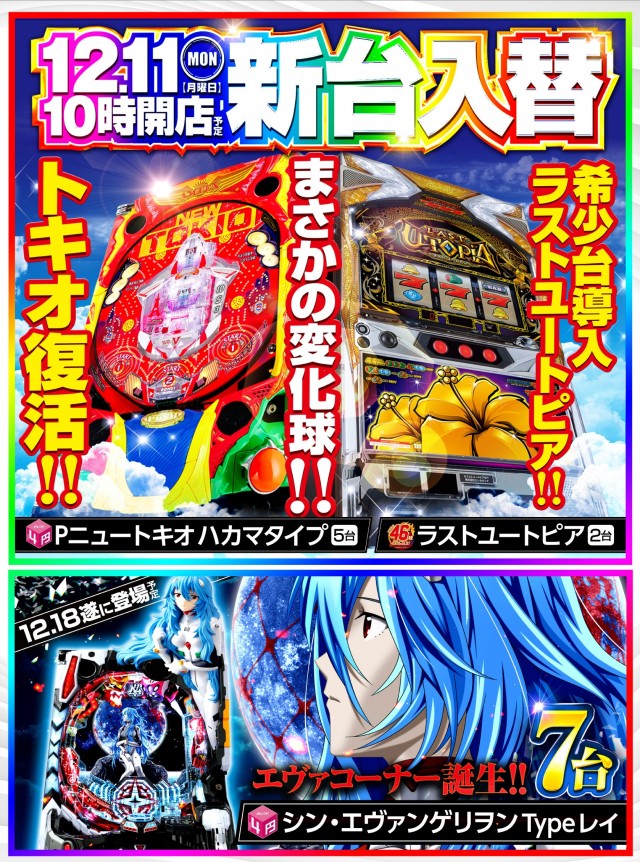 12月6日(水)スマスロ最新機種導入済デス🌈