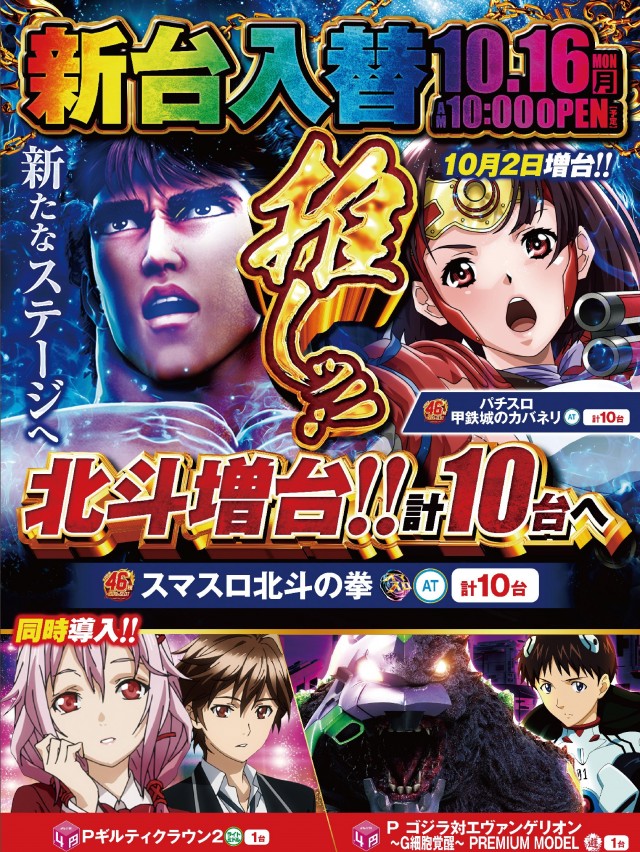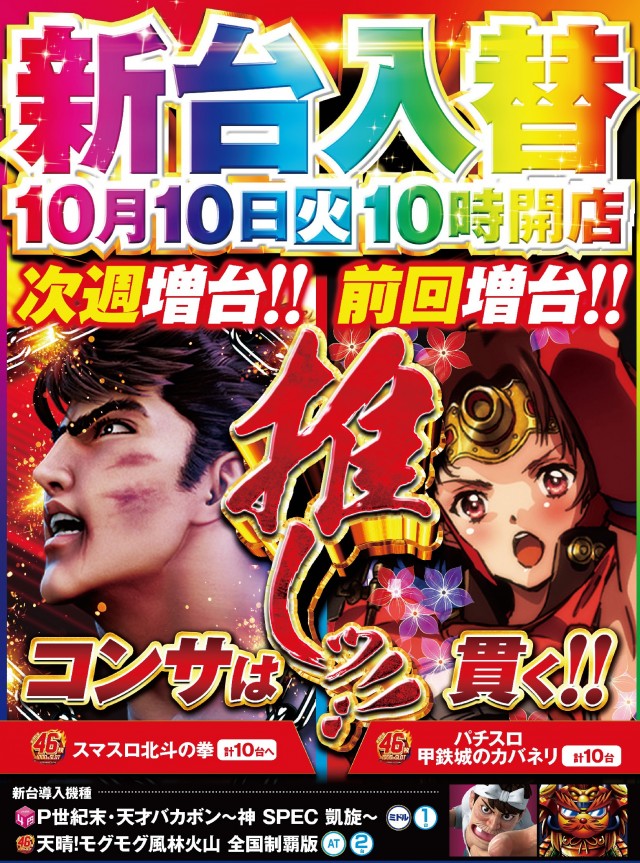 10月16日(月)新台入替🌈コンサは貫く🌈スマスロ北斗増台🌈