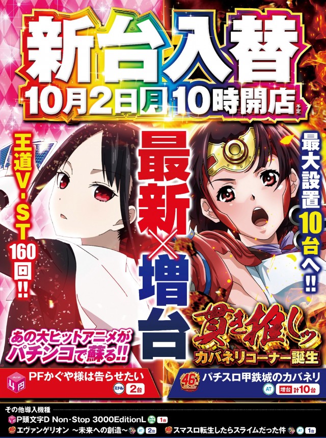 10月4日(水)新台入替3日目🌈Pかぐや他最新機種導入済🌈