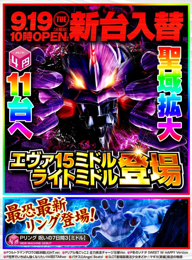 9月25日(月)新台入替🌈4円パチンコに新台登場デス🌈