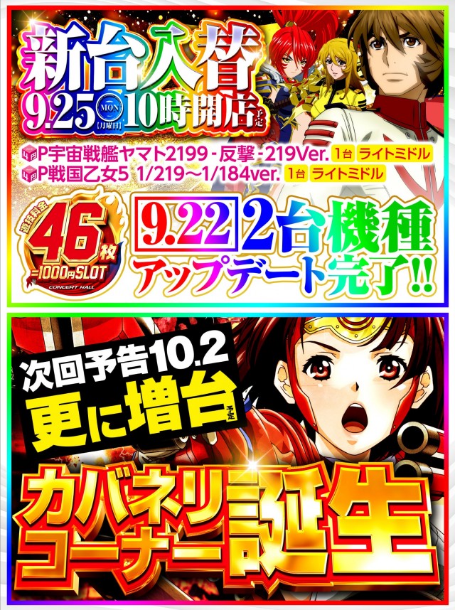 9月23日(土)新台入替後初の週末🌈全館10時開店デス🌈