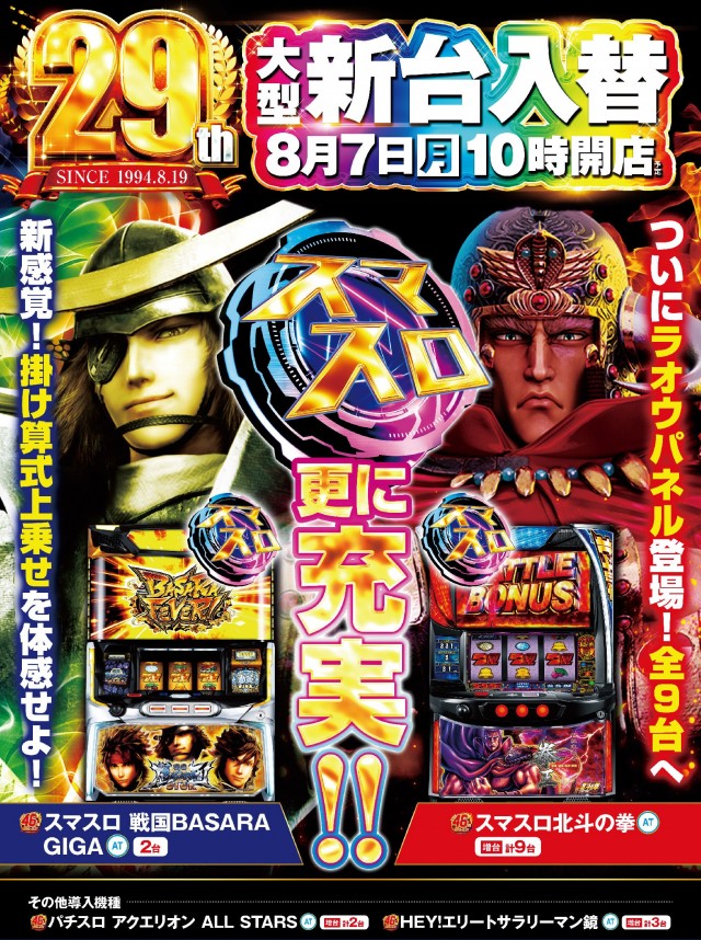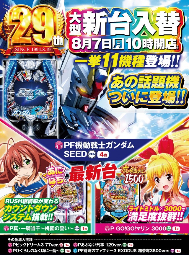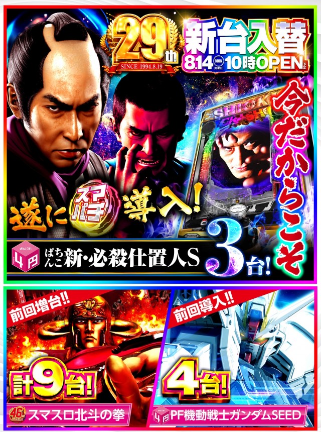 8月14日(月)コンサ志村🌈新台導入🌈おかげさまで29周年🌈