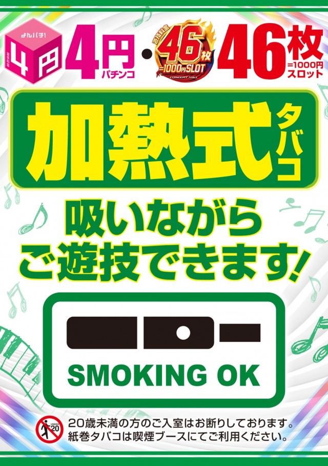 ※4円パチンコ/46枚スロット全台・1円パチンコの一部