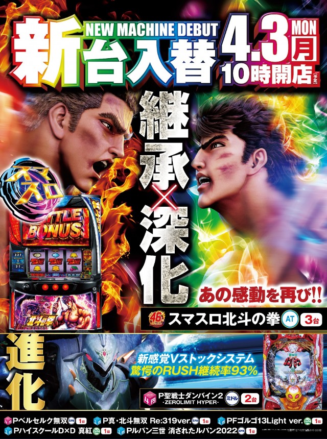 4月7日(金)10時開店🌈スマスロ北斗導入済デス🌈