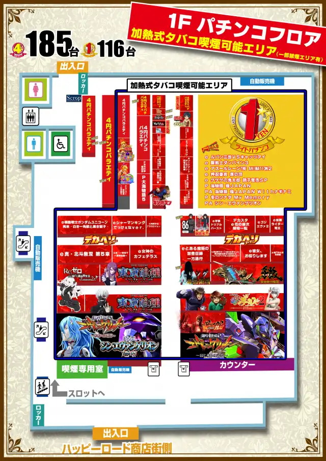 4パチ:185台 1パチ:116台 |
