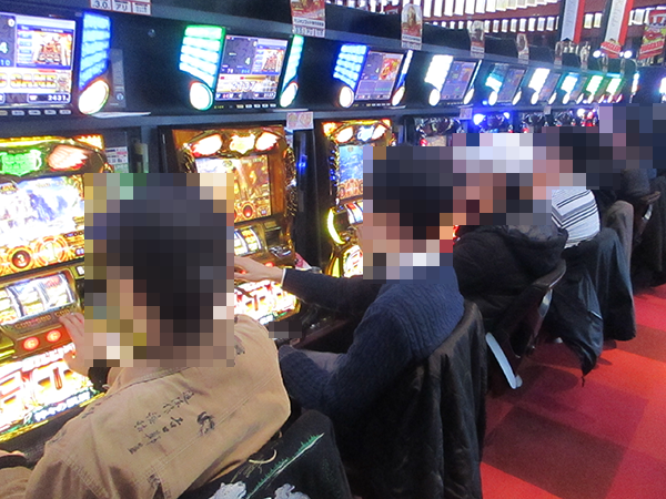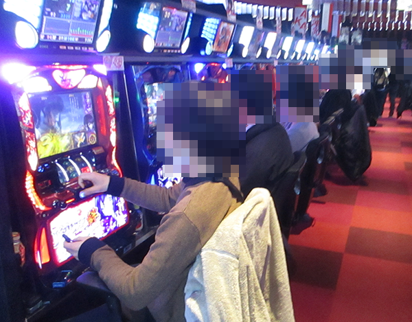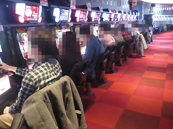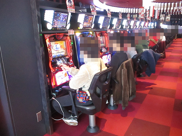朝イチのパチスロをみると、「バジリスク~甲賀忍法帖~絆」や「SLOT魔法少女まどか☆マギカ」などが満席。