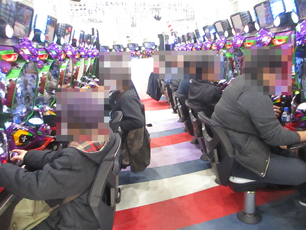 午後のパチスロにおいて、盛況となっていたのが「バジリスク~甲賀忍法帖~絆」と「ミリオンゴッド-神々の凱旋-」。イキイキとした表情でレバーを叩いているプレイヤーが目立ち、充実した時間を過ごしていたように思う。