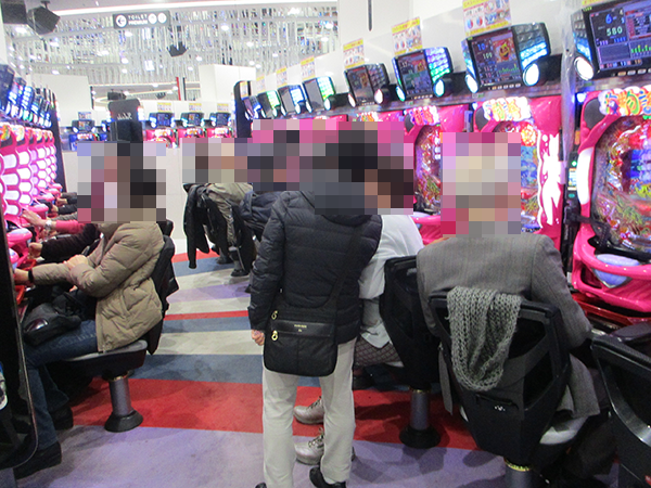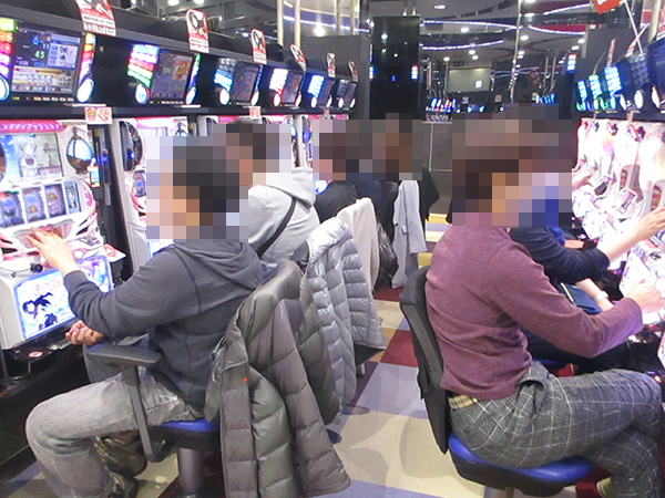 パチンコのなかで、とくに目立っていたのが海物語シリーズと「ぱちんこCR北斗の拳7 転生」。機種の性能を引き出しているといったプレイヤーがみられ、感じられる雰囲気はにぎやかだ。