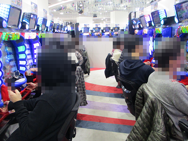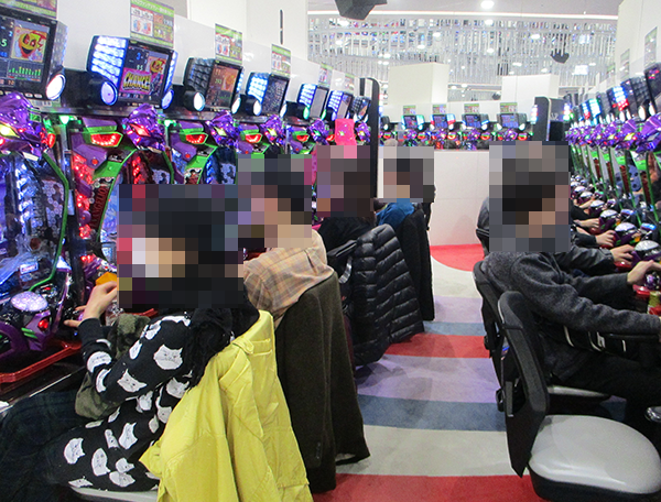パチンコの注目度も高く、海物語シリーズや「ぱちんこCR真・北斗無双」へむかうプレイヤーの姿を確認している。