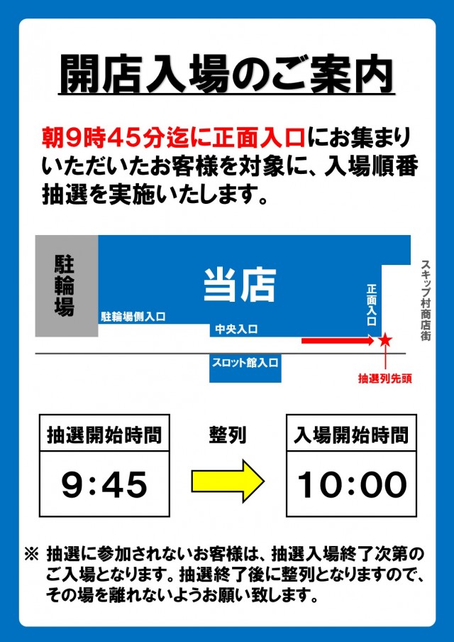 明日2月23日10時開店♪9時45分から入場順番抽選実施!