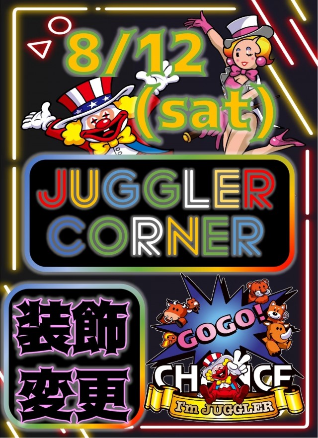 8月12日(土)明日、ジャグラーコーナー装飾変更💎
