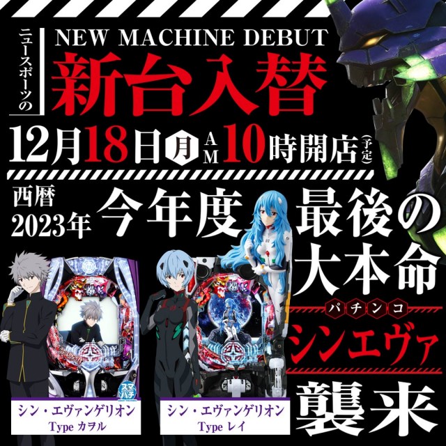 12月18日(月)新台❗エヴァ2機種❗抽選時間9時45分💥