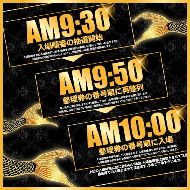 朝9:30までにお並び頂いたお客様を対象に抽選を致します。 |