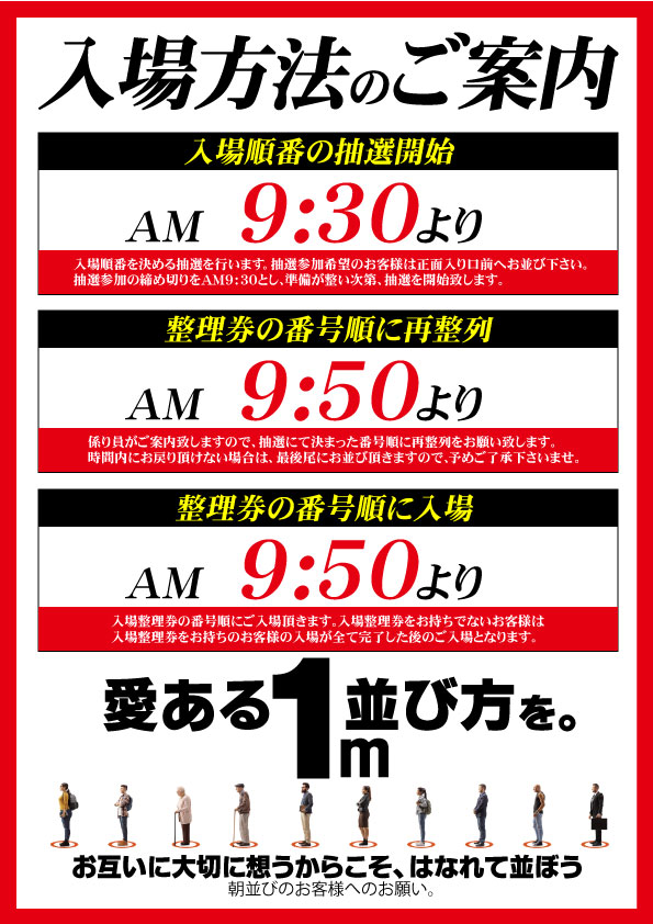 朝9:30までにお並び頂いたお客様を対象に抽選を致します。 |