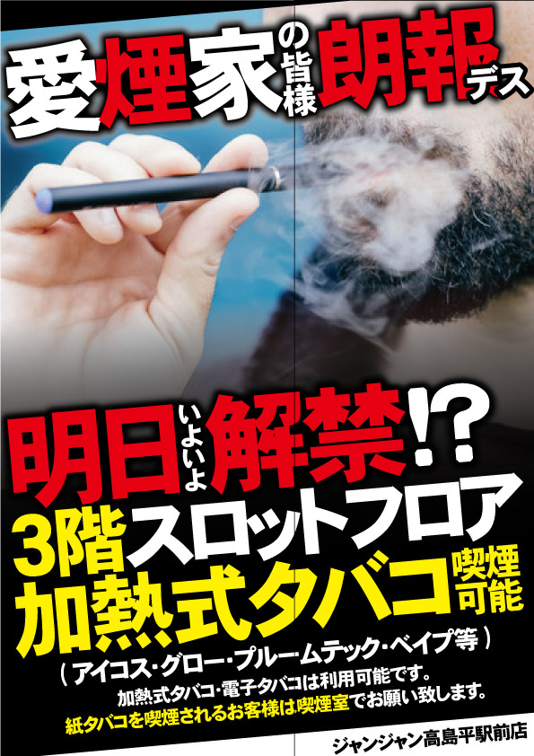 3階スロットコーナーが加熱式タバコOKに!