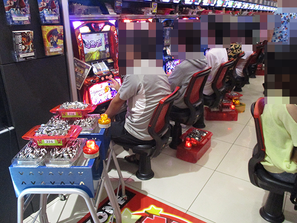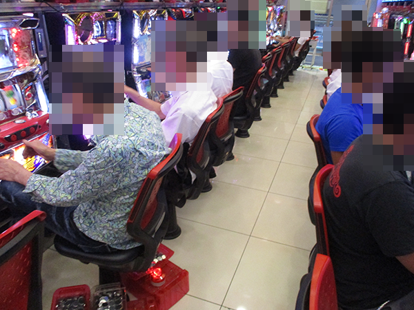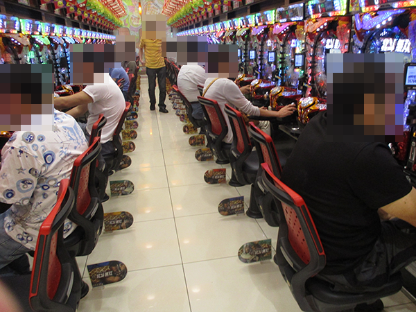 4円パチンコをみてみると、海物語シリーズが大好評。うれしそうな笑みを浮かべるプレイヤーからは、充実した時間を過ごせていることがうかがえた。