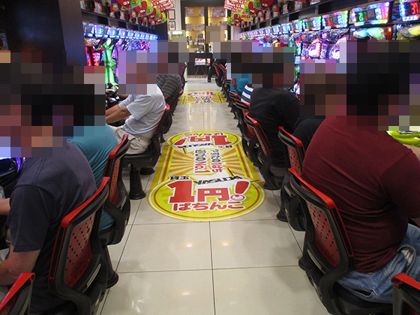 1円パチンコも高稼働で、海物語シリーズを中心にさまざまな機種がにぎわっていた。