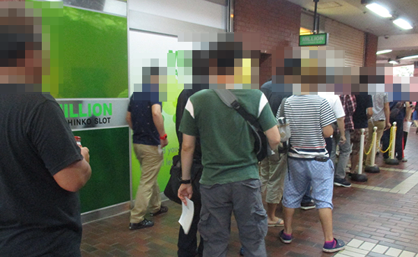 REAL取材Ωの2日目となる13日は、開店前から約40人のプレイヤーが来店。元気のよい声で朝のあいさつをしているスタッフがおり、さわやかさを感じられた。