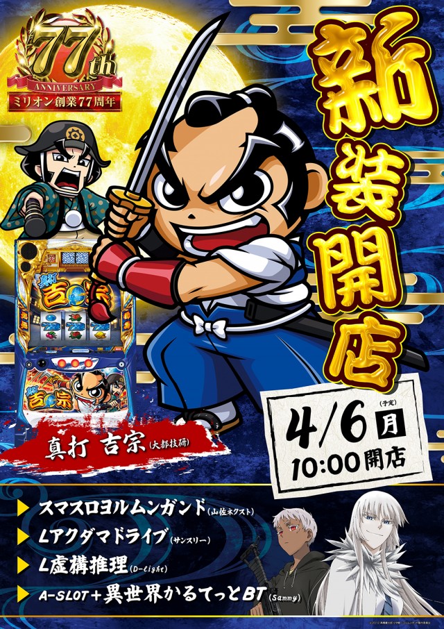ミリオン平和台店スロット館のお知らせ一覧