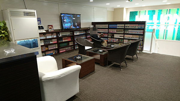 レストスペースは、ブラウンを基調にした落ち着いた雰囲気の空間に。インターネットを使って調べ物ができる環境も整ってました。漫画本も豊富! じっくりと休憩できそう♪