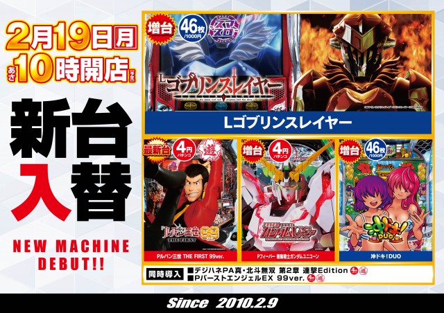 2/19新台入替!10時開店予定!ご来店お待ちしております!