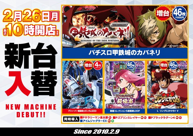 2/26新台入替!10時開店予定!ご来店お待ちしております!