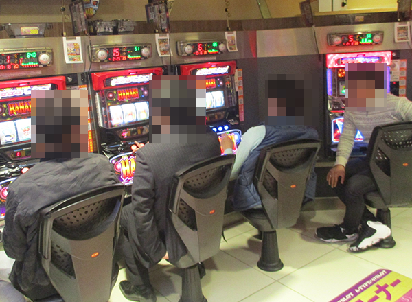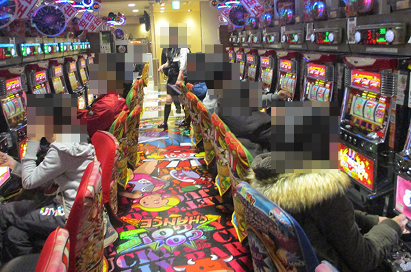 ジャグラーシリーズや「ハナビ」、「クランキーセレブレーション」といったボーナスタイプも活況。ポテンシャルを発揮できているようなプレイヤーも多く、明るい雰囲気が感じられた。