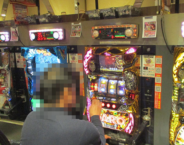 新台の「パチスロ牙狼‐守りし者‐」と「パチスロ モンキーターンⅢ」でも華麗なパフォーマンスを披露する姿を発見。その後ろ姿からは、満足感を得られていることも伝わってきた。