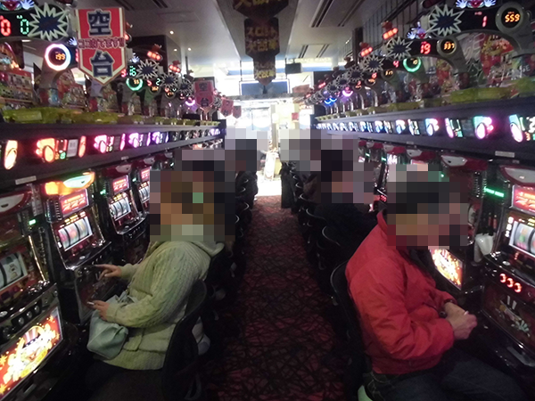 15時頃の20円パチスロをみてみると、「ニューアイムジャグラーEX-KA」や「マイジャグラーⅡ」が大にぎわい。なかには、ポテンシャルを発揮しているようなプレイヤーがおり、満足度も高そうであった。