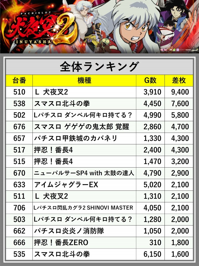 厳選された取材対象機種をはじめ、その他スロット全体から好記録が飛び出した!プレイヤーが楽しんだ1日を下記データにて振り返ってみて欲しい。