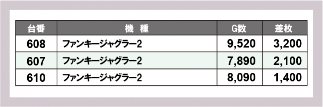※差枚数順に掲載しています
