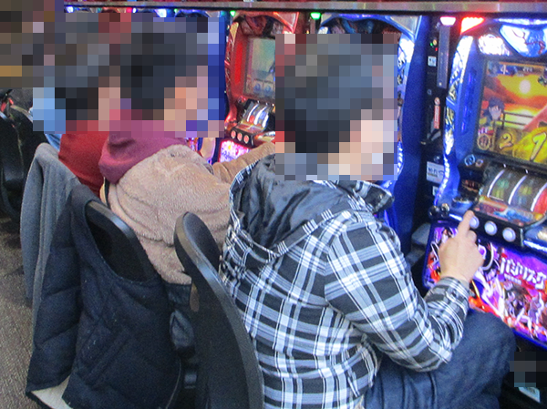 午後のパチスロにおいて、存在感を放っていたのは、朝イチから支持されている「バジリスク~甲賀忍法帖~絆」。イキイキとした表情でレバーを叩いている姿があり、何度も立ち止まって眺めてしまうほどのステキな光景を目にしている。