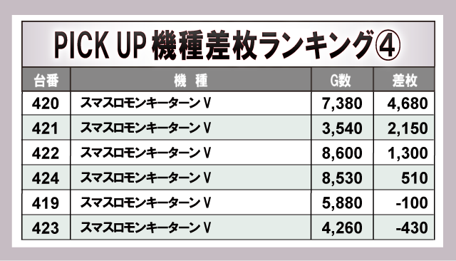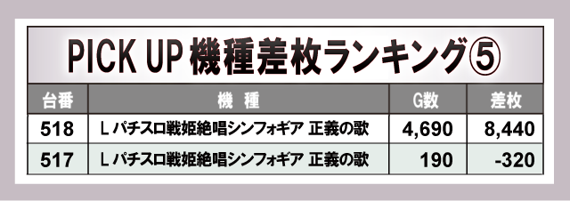 続いては、当日とくに店内を盛り上げた6機種を紹介。6機種それぞれから好記録が出現していたが、それらのなかでも注目してほしいのは「スマスロ北斗の拳」だ。ピックアップ12台のうち6台がプラス終了となっており、そのうち4台が+1,000枚OVERと素晴らしい結果を残していた。その他の機種も好成績を収めており、ファンは有意義な時間を過ごせたことだろう。