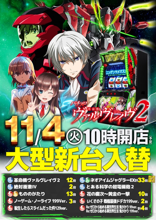 🎉🎉11月❹日(火)⚡大量新台入替⚡📝朝10時開店🎉🎉