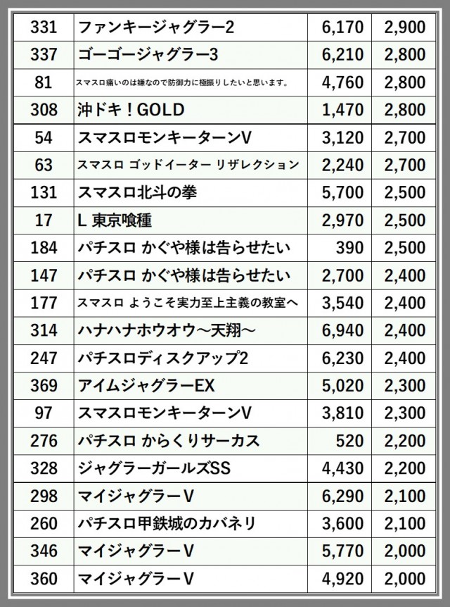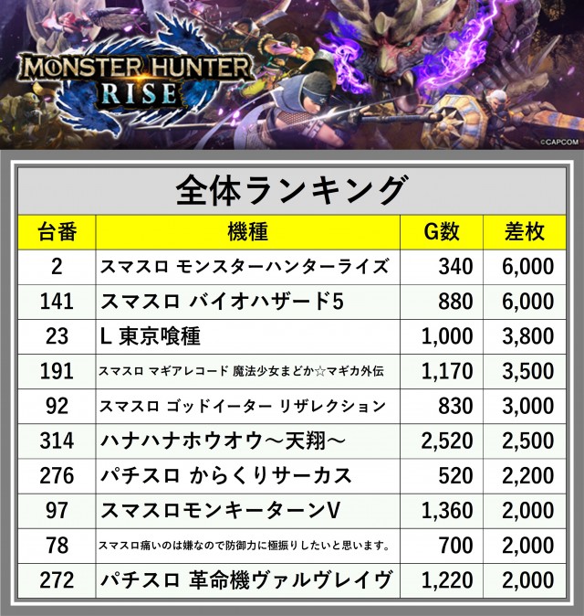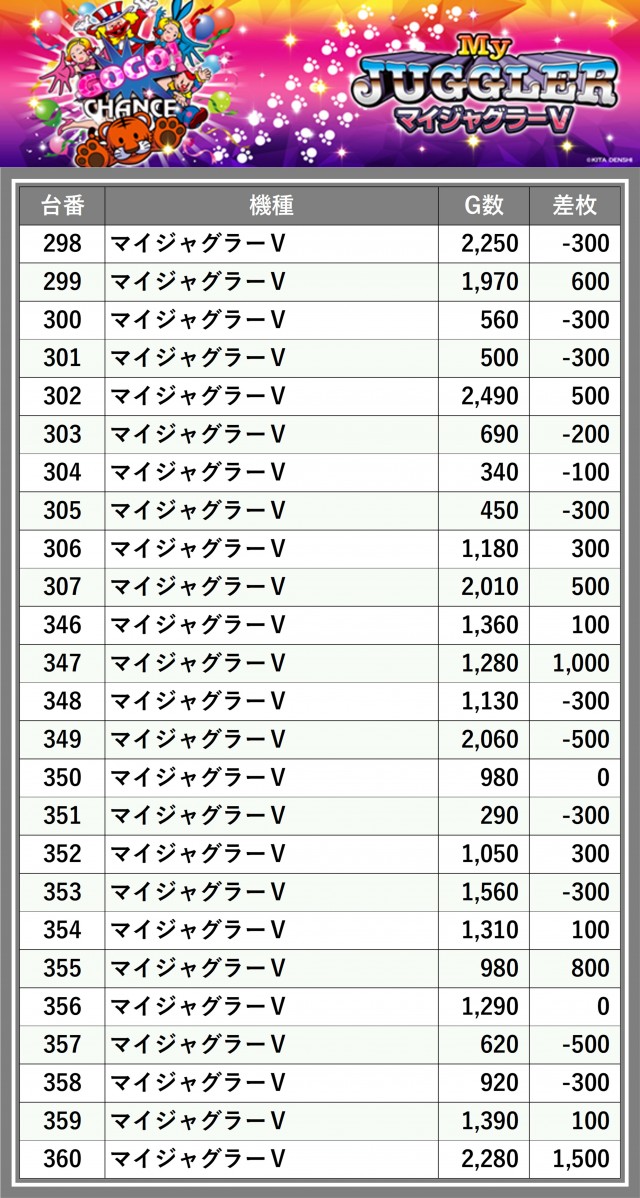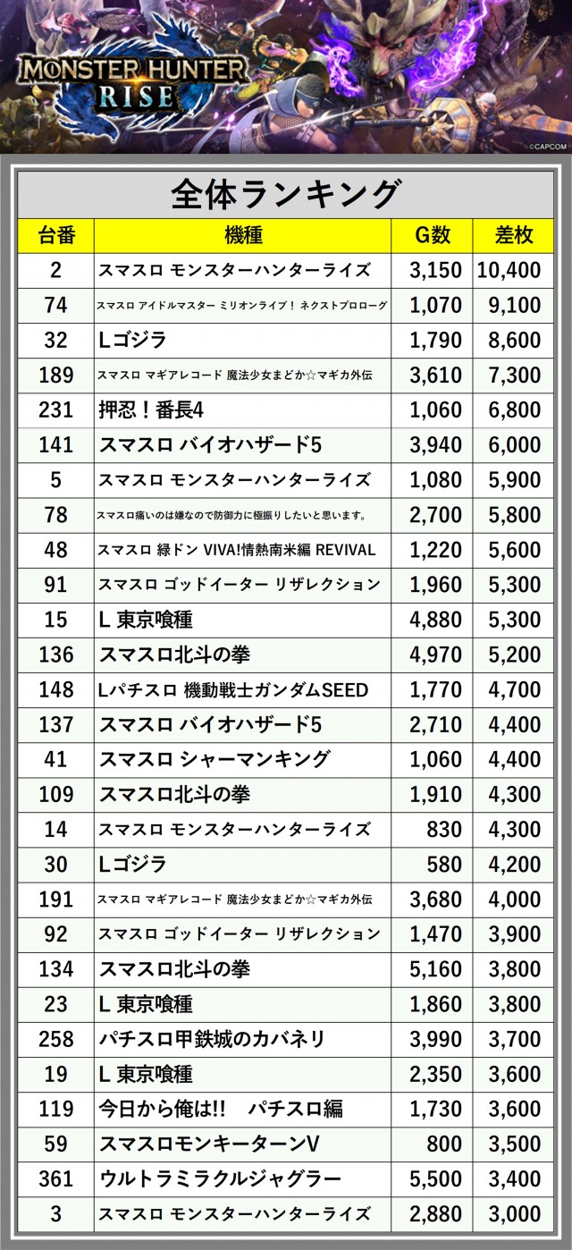 厳選された取材対象機種をはじめ、その他スロット全体から好記録が飛び出した!プレイヤーが楽しんだ1日を下記データにて振り返ってみて欲しい。