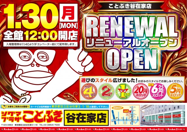 1月30日[月]全館リニューアル 12:00OPEN!!
