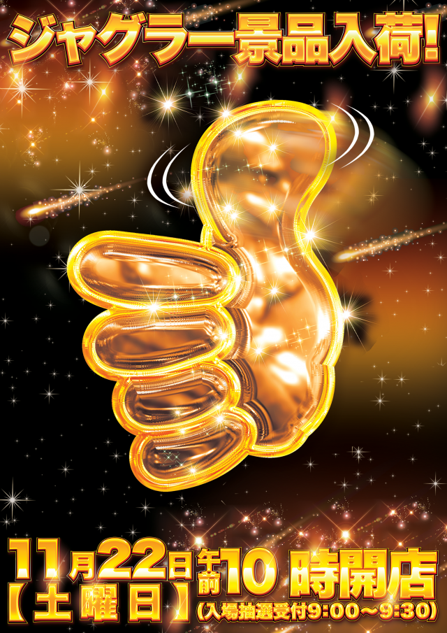 【ジャグラー景品】11月22日(土) 午前10時OPEN!!