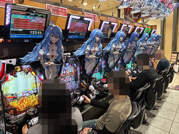 16時ごろの4円パチンコをチェックすると「ぱちんこ シン・エヴァンゲリオン Type レイ」や「e 仮面ライダー電王」が盛況の様子。プレイヤーたちの満足気な表情が印象に残っている。