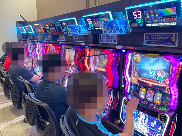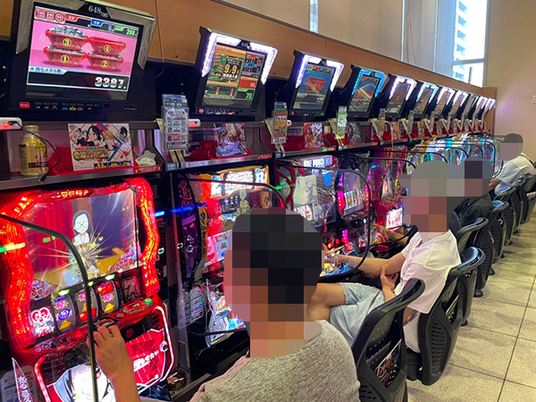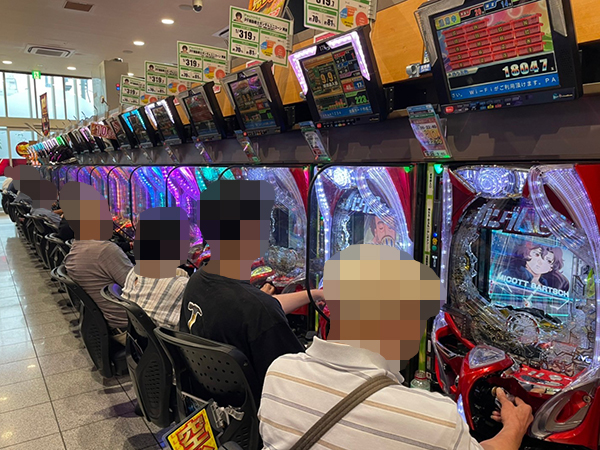 16時ごろの4円パチンコを見てみると「Pフィーバー機動戦士ガンダムユニコーン 再来-白き一角獣と黒き獅子-」や「P大海物語5」が活況。プレイヤーの満足そうな表情から、充実した時間を過ごしていたことがうかがえる。