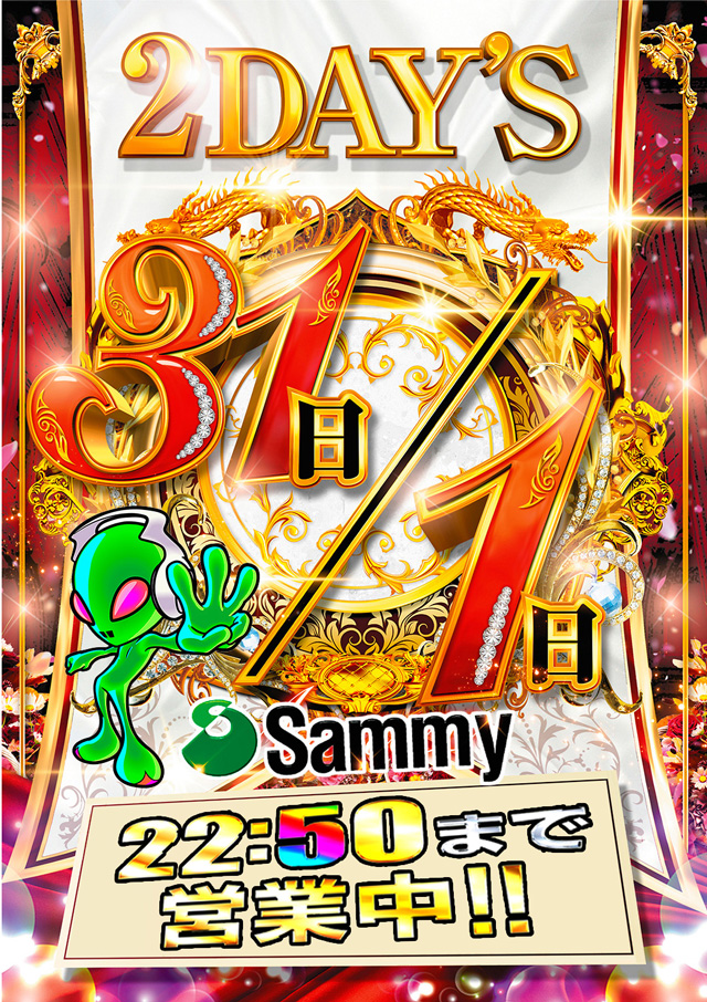 11/3(㊊㊗)➡『➌連休最終日も!➌台機種&Sammy👽』