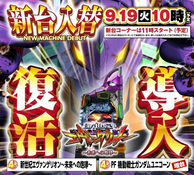 【10月3日】<火>新台入替2日目!新台も全館10時オープン